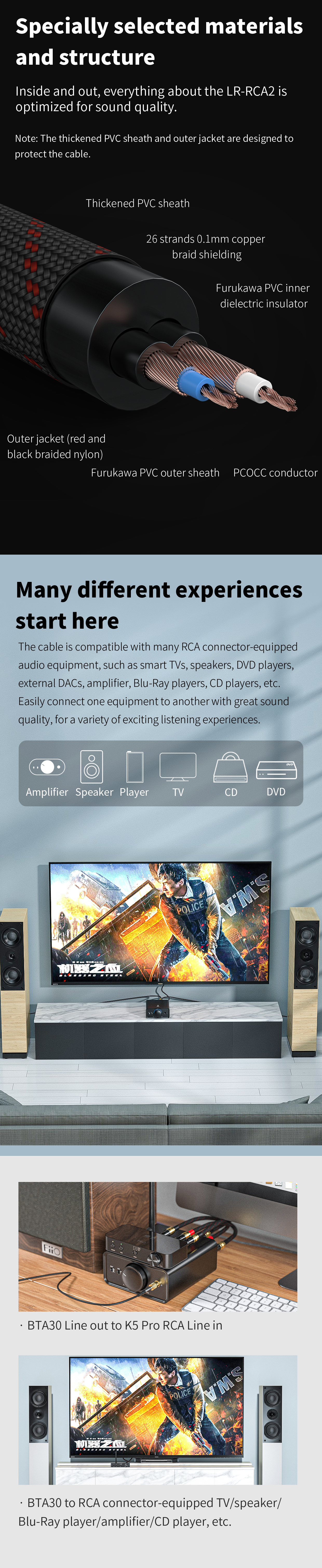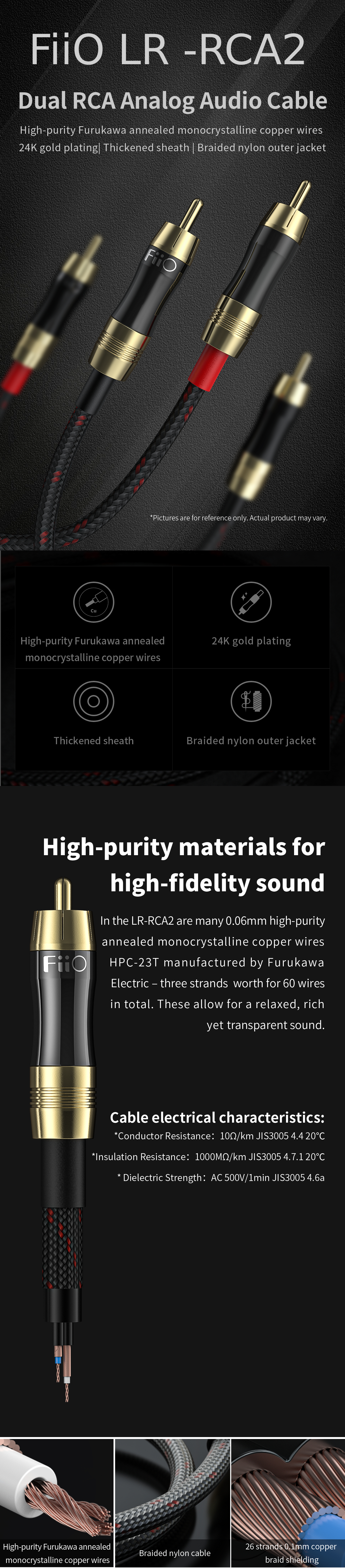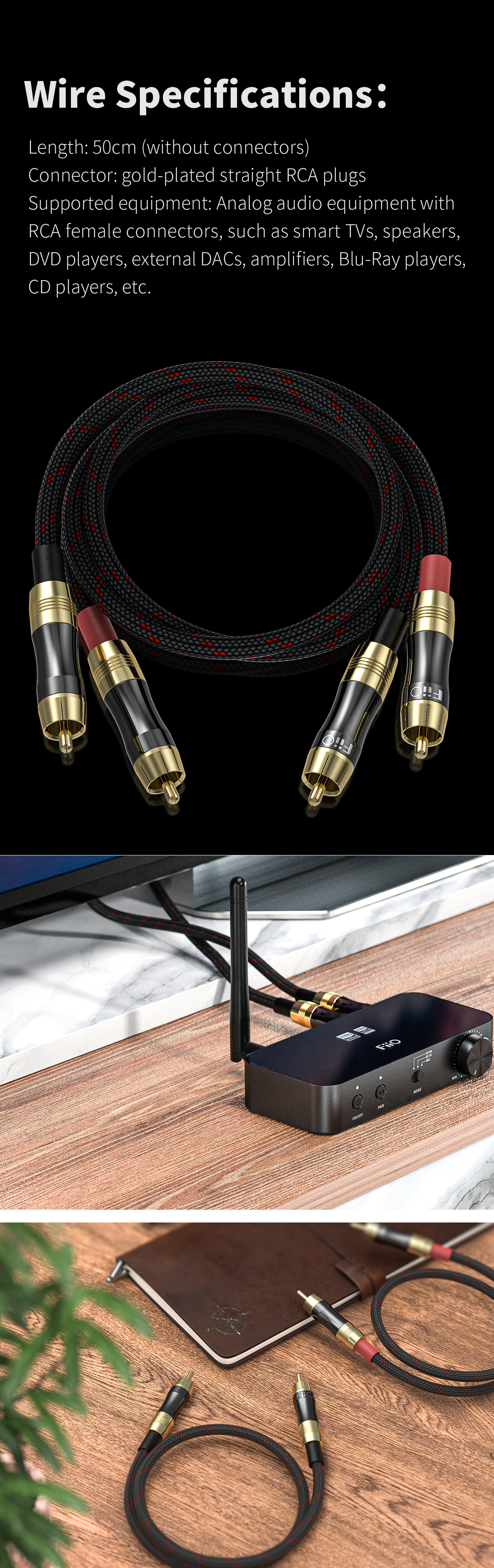 FiiO LR-RCA2 Dual RCA Connector Analogue Audio Cable