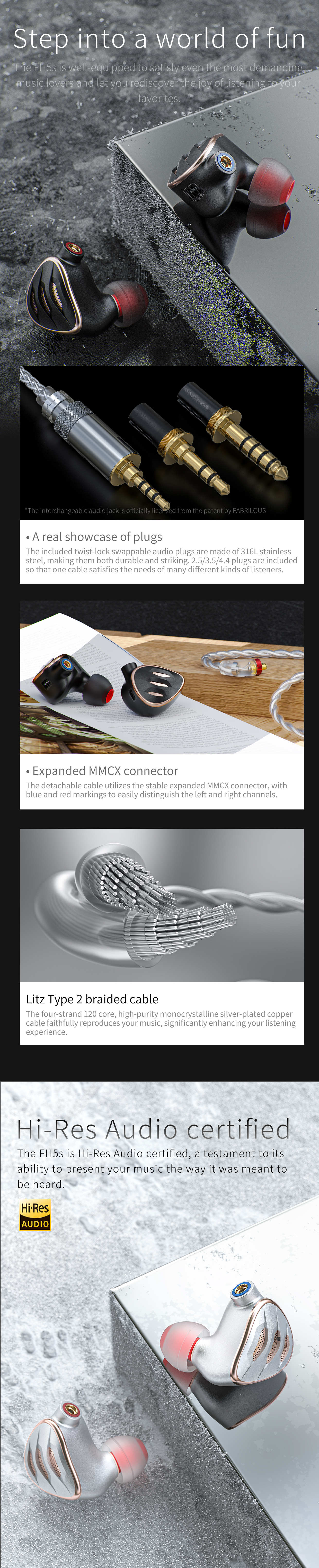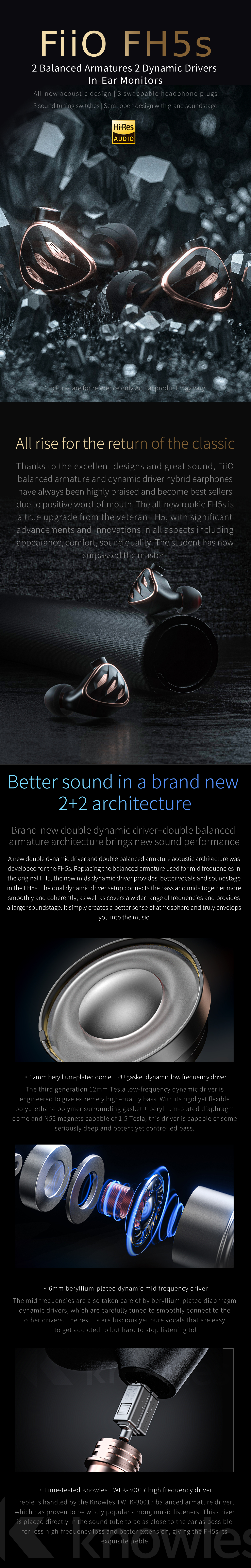 FiiO FH5s 2 Balanced Armatures 2 Dynamic Drivers In-Ear Monitors.
