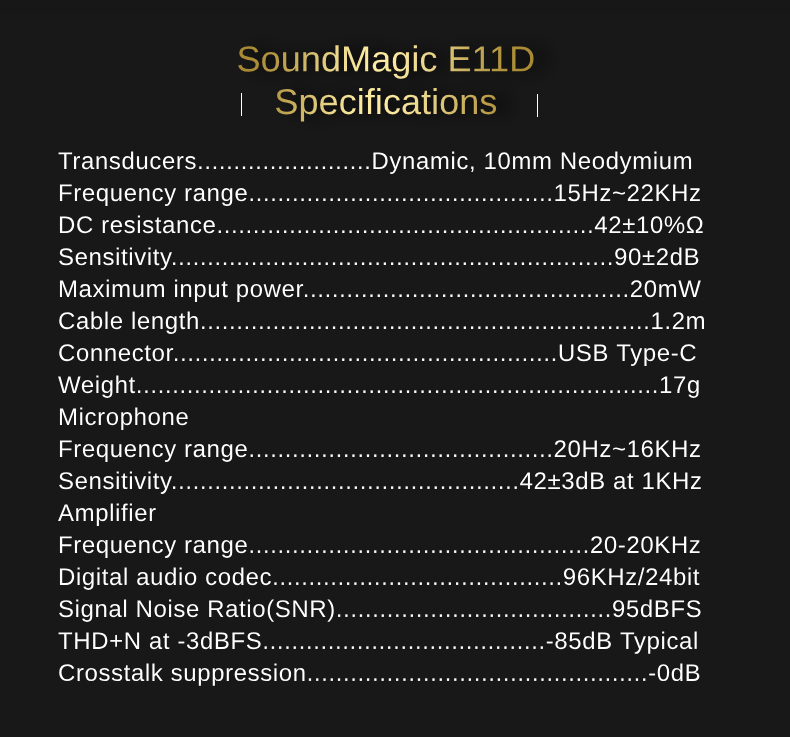 SoundMAGIC E11D In-Ear Isolating USB-C Earphones with DAC.