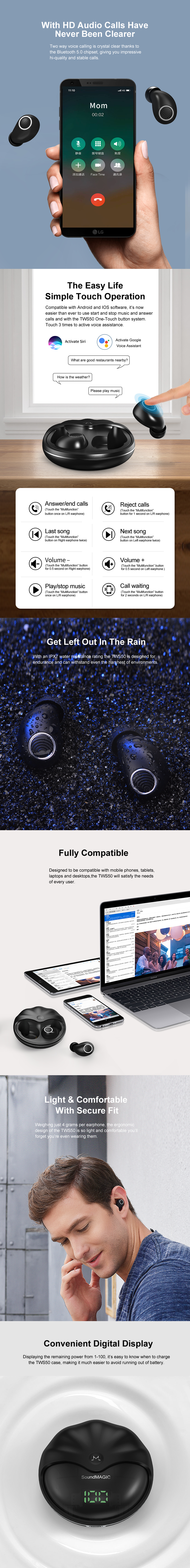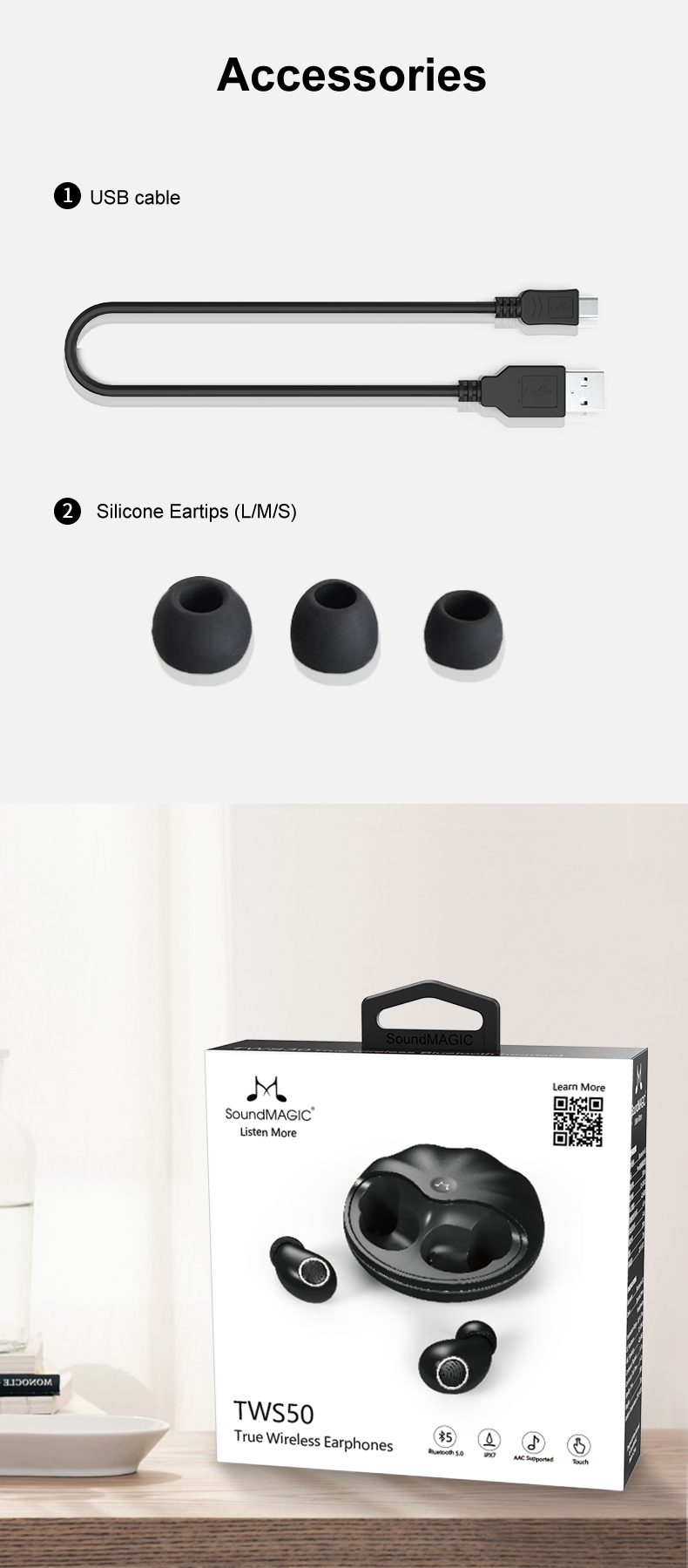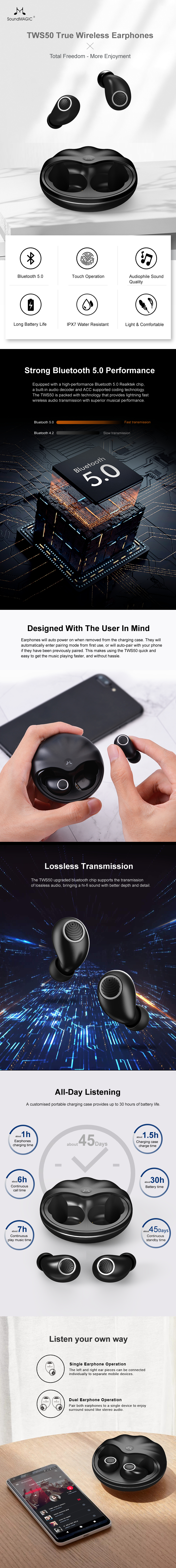 SoundMAGIC TWS50 True Wireless In Ear Isolating Earphones.